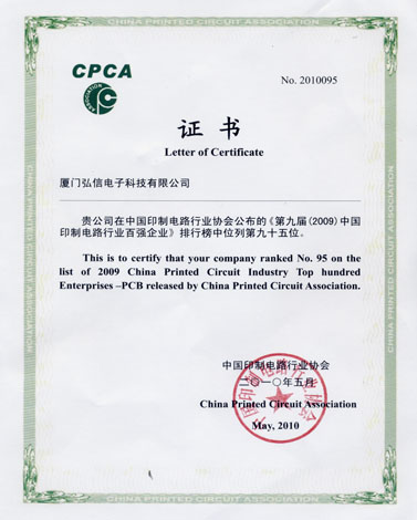 根据中国印制电路行业公布的数据,在2010年5月公布的数据中,我司跻身第九届中国印制电路行业百强企业。