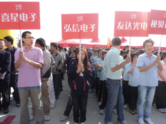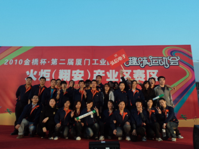 11月27日,我司21人运动员代表队同拉拉队参加了2010年火炬(翔安)产业区赛区的趣味运动会。此次参赛的包括弘信电子、冠捷、友达、三立等公司在内的18个企业代表队,比赛活动包括“拔河”、“勇攀高峰”、“同舟共济”、“同心协力”等共10个项目