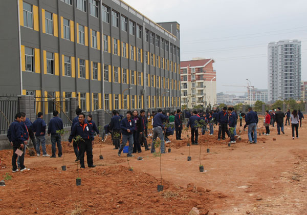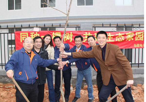2011年3月11日下午,一个主题为“同种一棵树共建生态家园”的植树活动在崭新的弘信电子工业园展开。在总经理王毅的发言倡导下,弘信自发组织的活动成员们都争先拿起锄头、水桶等工具开始挖土种树,园区内原本空旷的待绿化带顿时生机盎然!所有难得从产线上出来的弘信人个个像回归自然的孩子一样,热烈响应,将小树苗亲手栽种浇水,并与小树苗合影留念。
