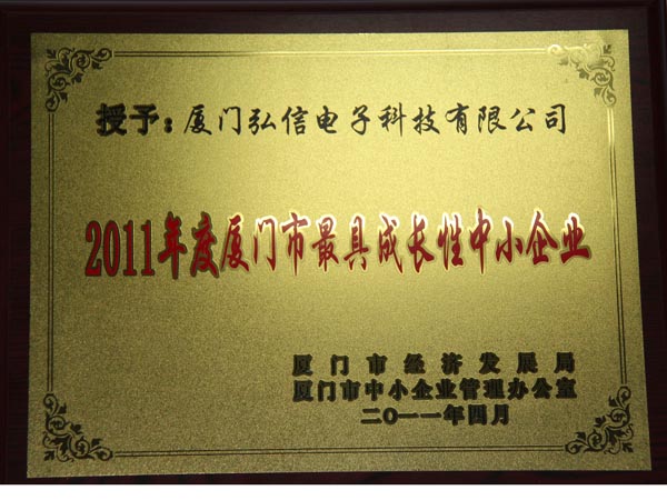 | 热烈祝贺我司评为2011年度厦门市成长性中小企业 |