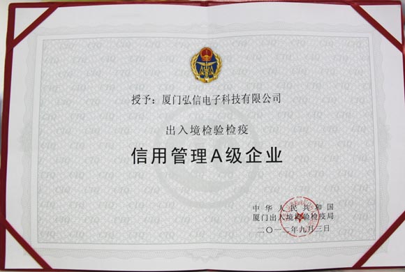 国家对进出口企业设置了ABCD四个信用等级,对于A级企业,依据“守信便利,失信惩戒”的原则,给予享受检验检疫优惠政策,优先推荐实施免验、一类管理、绿色通道、直通放行等便利措施;获此荣誉即是对我司长期以来坚持品质以及诚信的肯定。