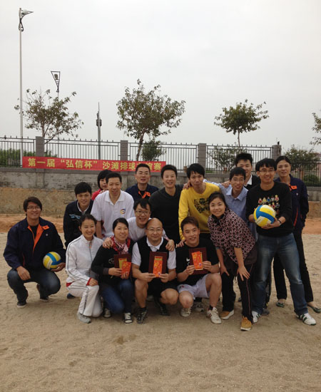 为了丰富弘信人的业余生活,提升企业文化的凝聚力,加强各职能部门的互动交流,2012年12月22日,第一届“弘信杯”沙滩排球友谊赛在弘信电子工业园沙滩排球专业场地隆重开赛。