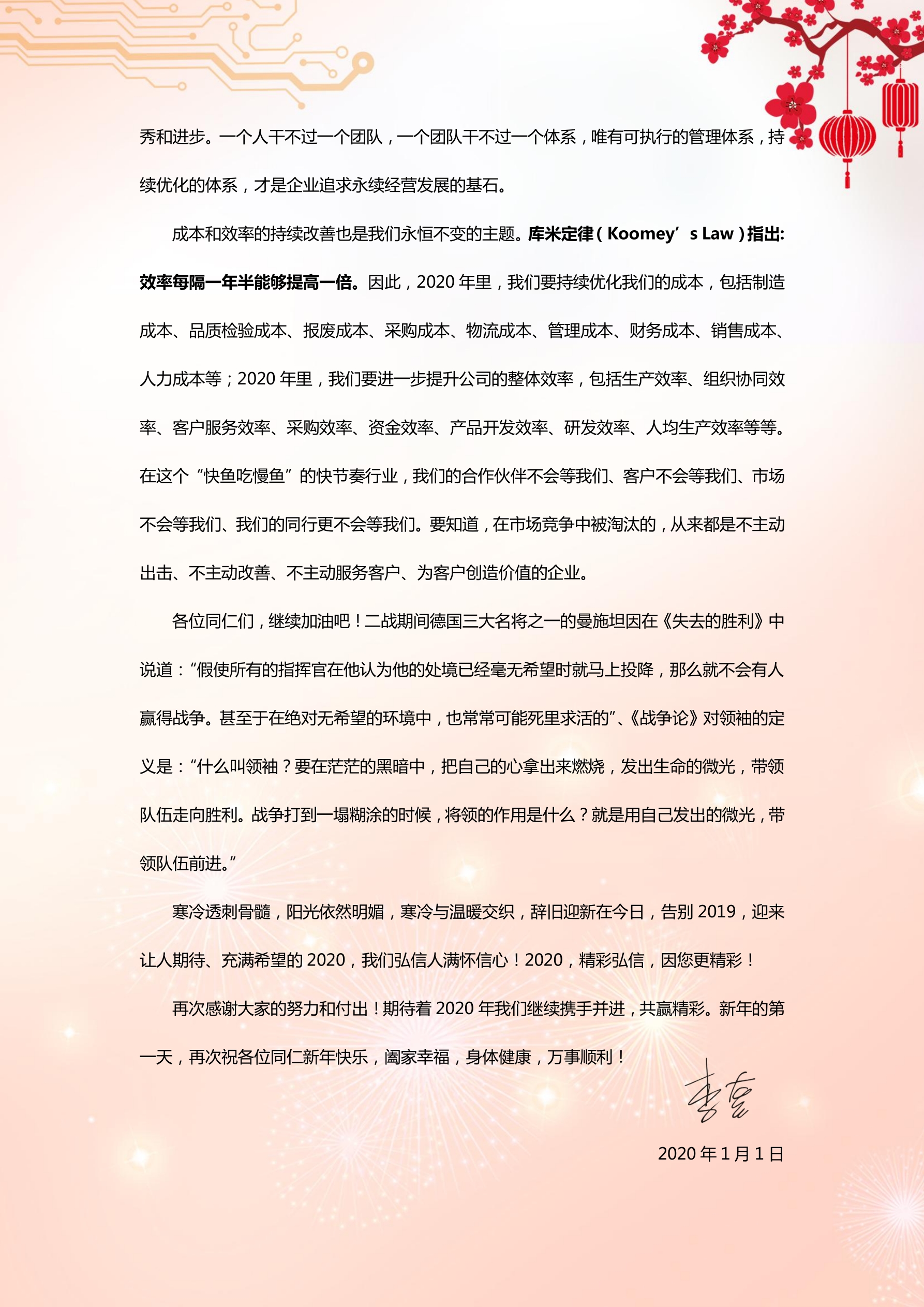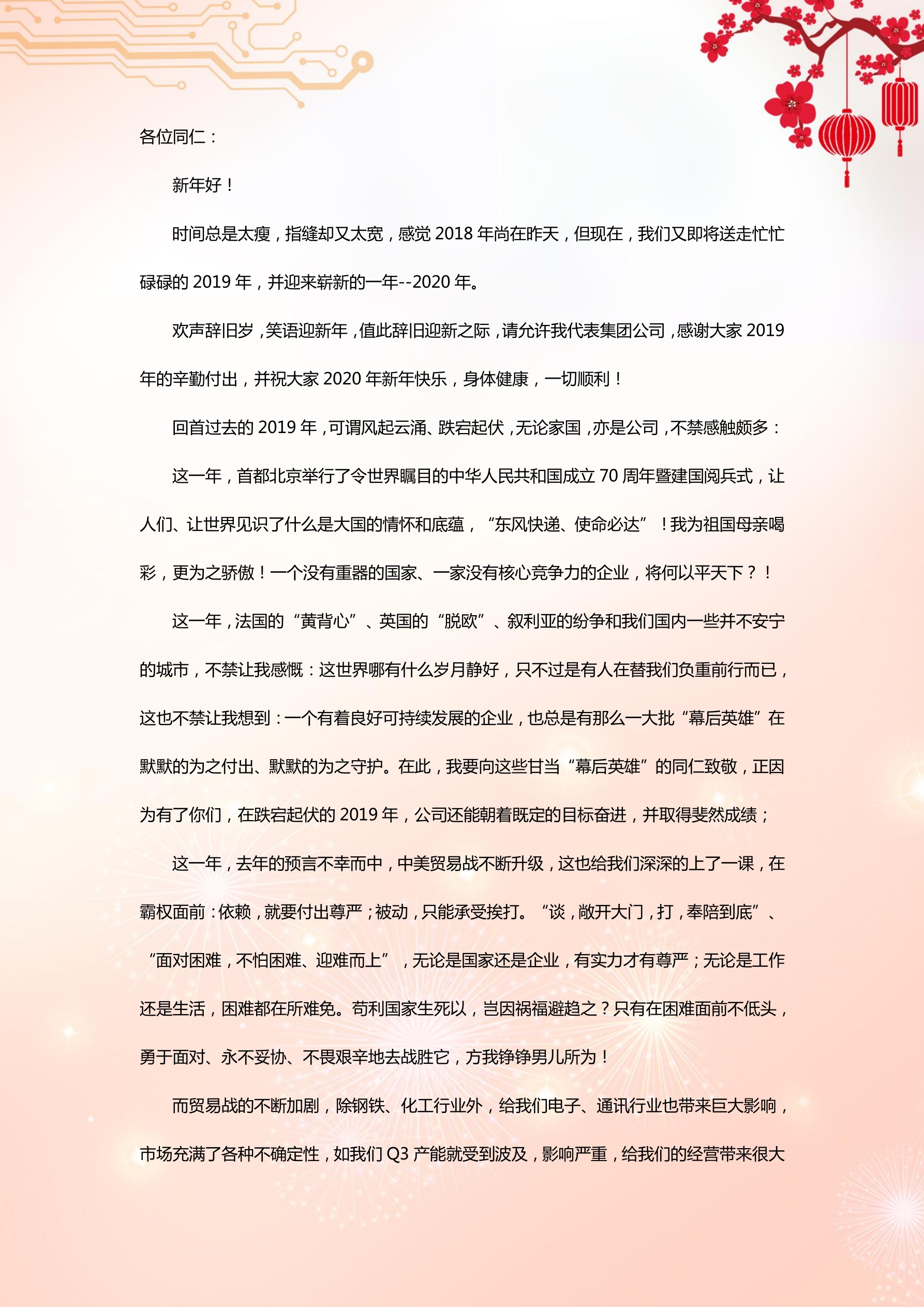 《总经理致全体员工的一封信》(2018年1月1日)